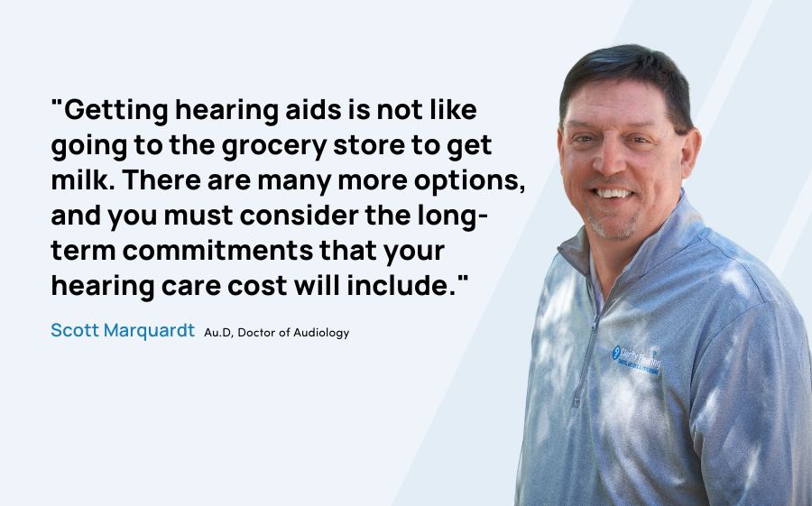 Getting hearing aids is not like going to the grocery store to get milk. There are many more options, and you must consider the long-term commitments that your hearing care cost will include.